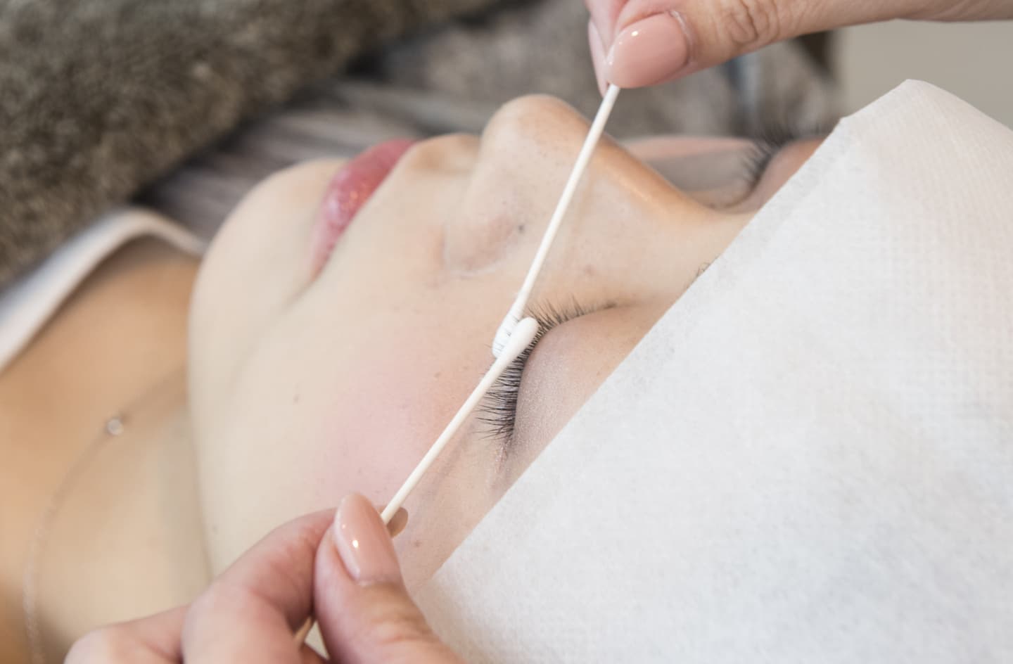 本日施しましたデザインを賞美期限を迎える日まで楽しんでいただけますために、施術後はお客様のまつげに寄り添ったアフターケアを担当したスタッフよりご説明させていただきます。